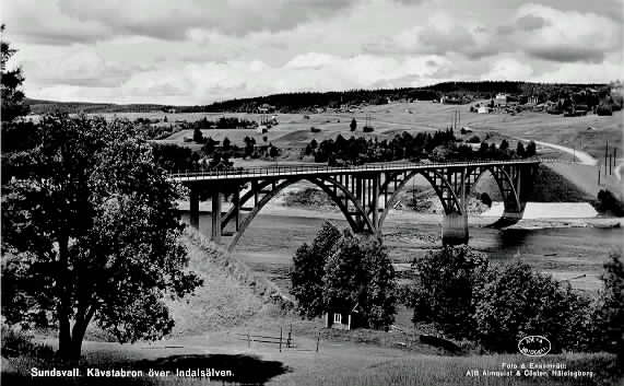 Kävstabron (den andra i ordningen) över Indalsälven. Vykort.
