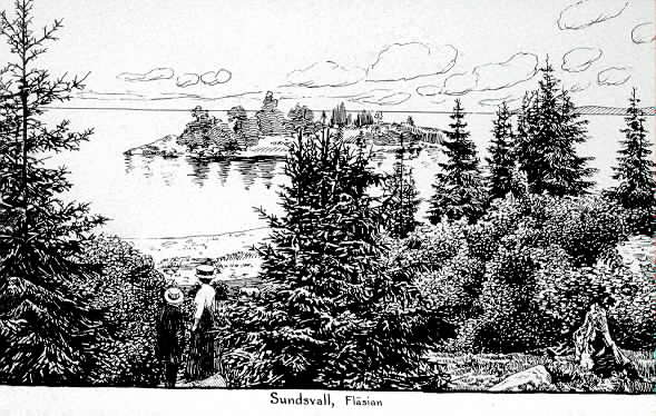 Fläsian, söder om Sundsvall. Tecknat vykort.