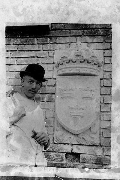 Stenhuggare? Vid ett vapen in murat i en väg ”1912 A” på asken