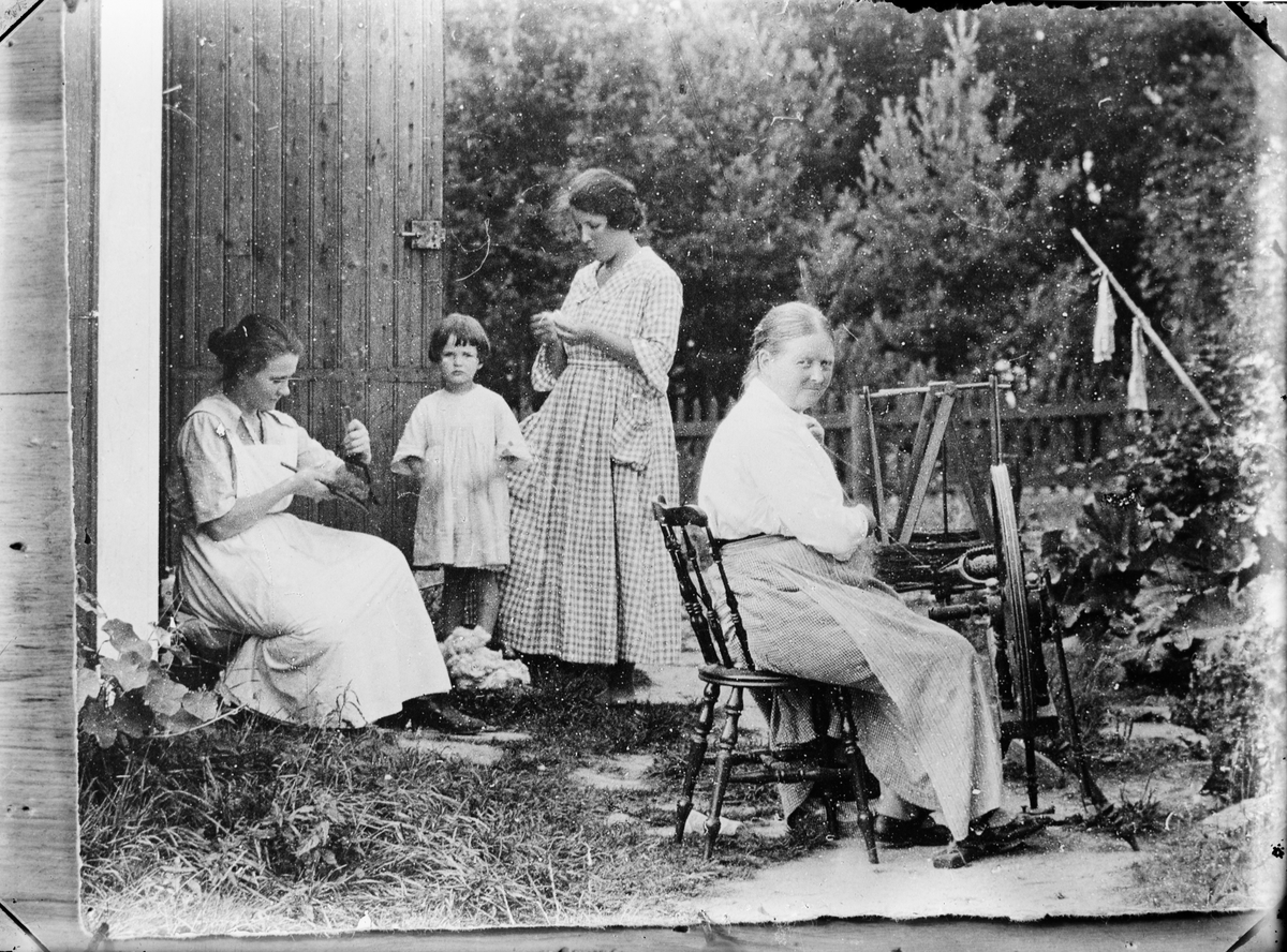 Reprofotografi - Näsudden, "Vid spinnrocken lärarinnan på Söderön Anna Karlsson", Östhammar, Uppland