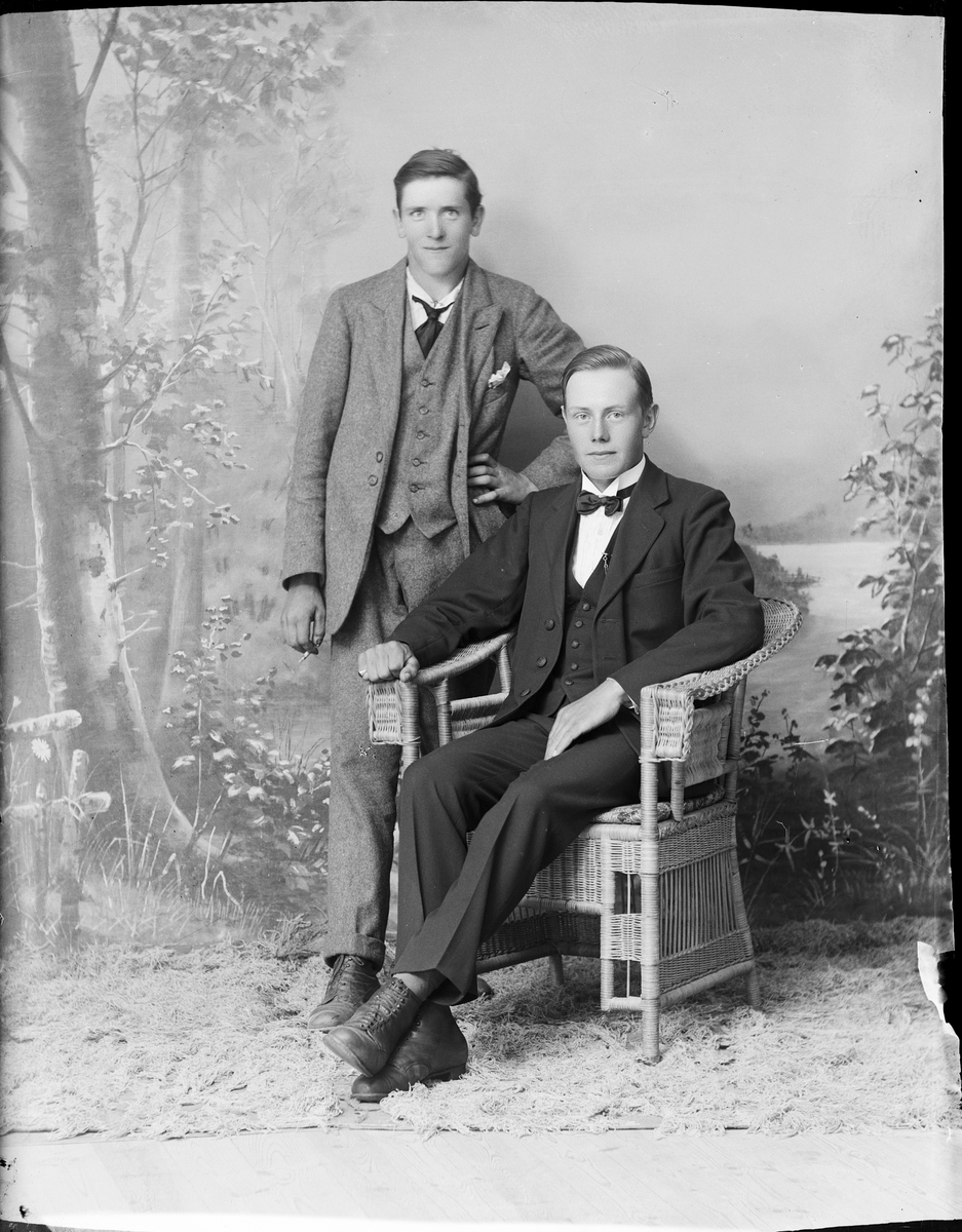 Ateljéporträtt - Wilhelm Eriksson och E. Hörner från Börstil socken, Uppland 1922