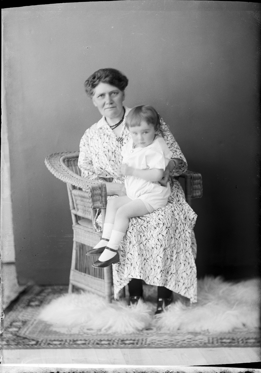 Ateljéporträtt - kvinna med barn i knät, Östhammar, Uppland 1922