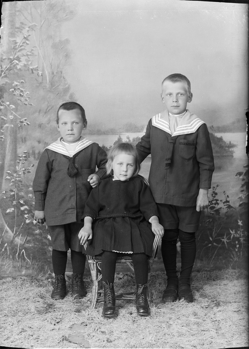 Ateljéporträtt - barn till Wahlström från Svartnö, Börstil socken, Uppland 1922