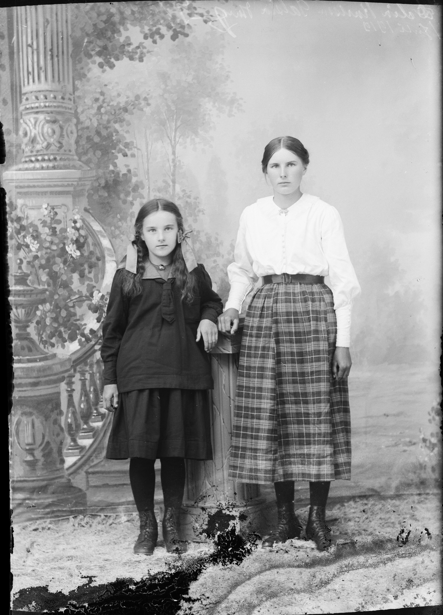 Ateljéporträtt - två flickor, Östhammar, Uppland