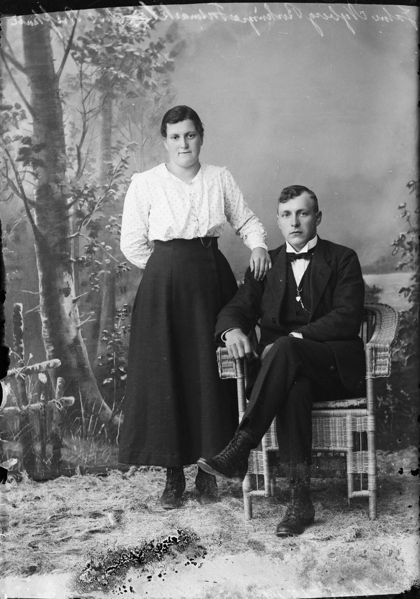 Ateljéporträtt - kvinna och John Nyberg från Berkinge, Forsmark socken, Uppland