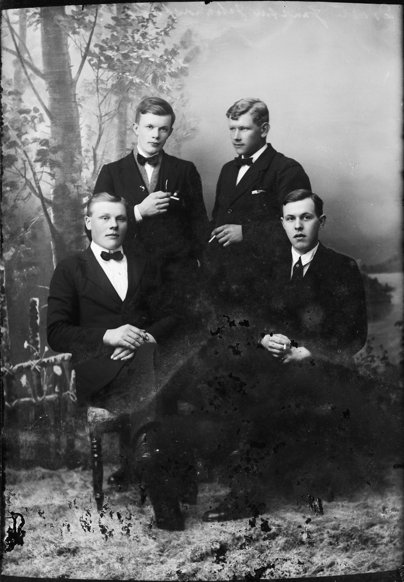 Ateljéporträtt - tre män tillsammans med Evert Jansson från Johannisfors, Forsmark socken, Uppland