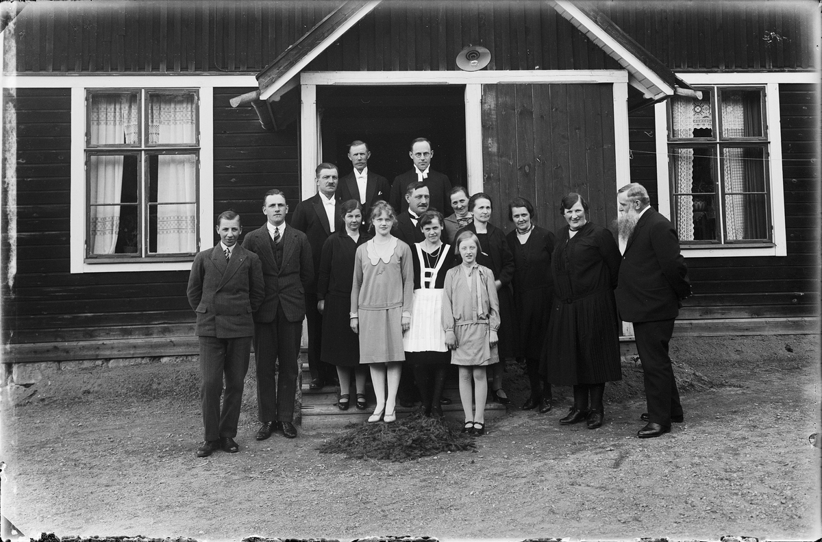 Grupporträtt framför bostadshus, Östhammar, Uppland