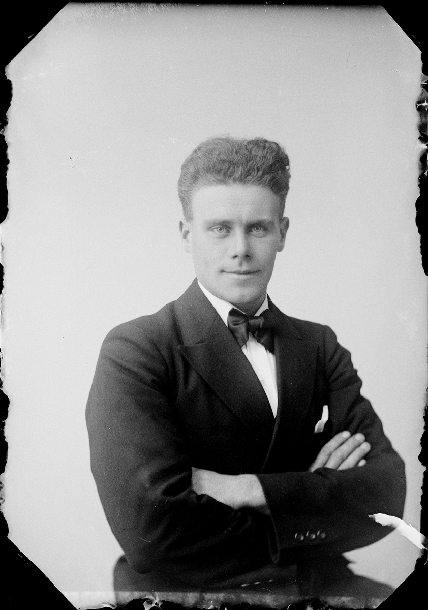 Ateljéporträtt - Uno Bauman från Västra Tvärnö, Harg socken, Uppland 1923