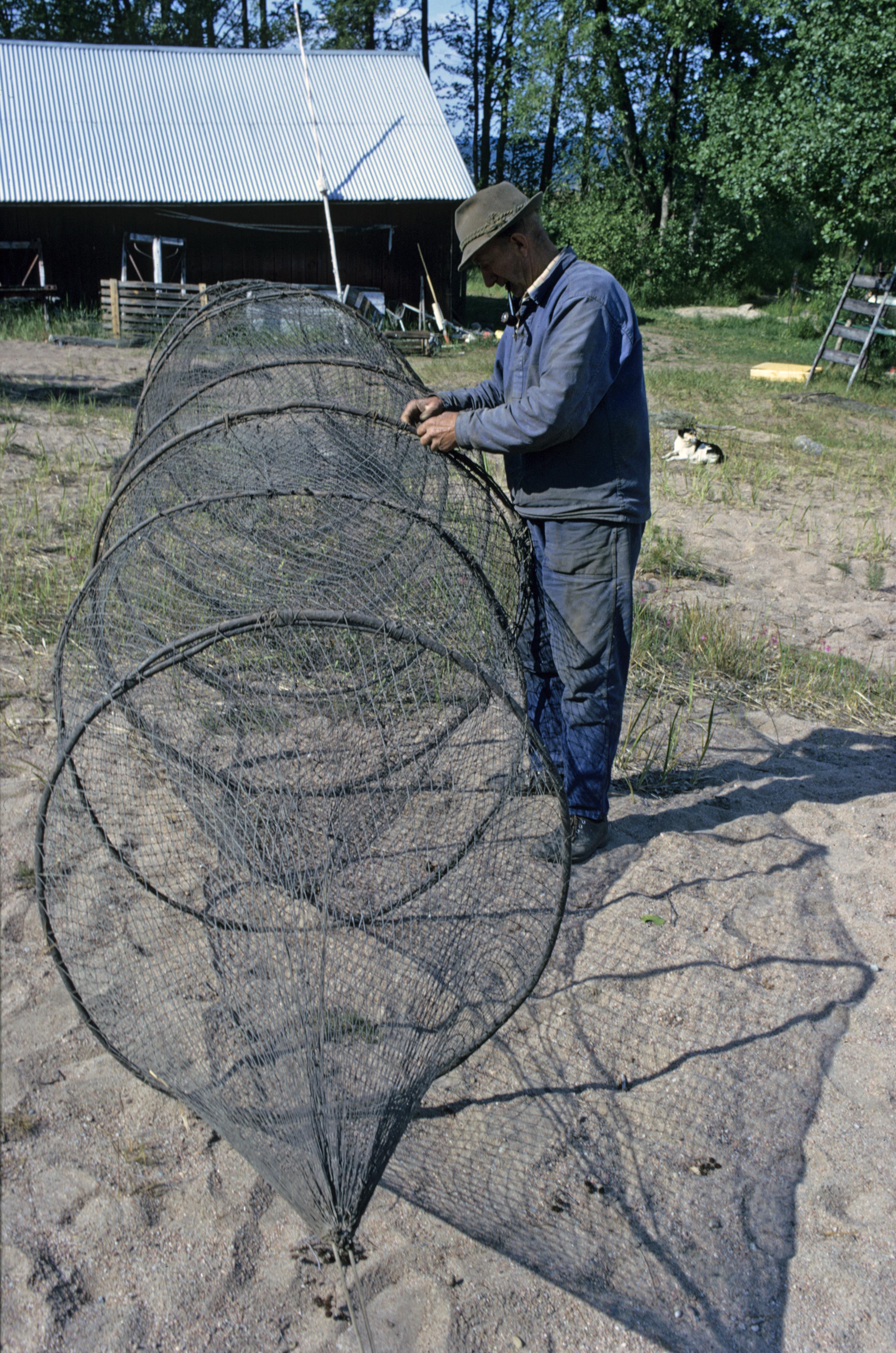 Preparering av ryssja (homma) för fiske. Bilden troligen från mitten av 1970-talet.