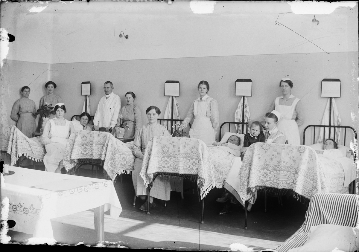 Sjuksal med patienter och sjukvårdspersonal, Östhammars lasarett, Uppland
