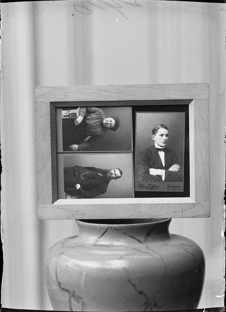 Fotografier i ram står på en urna, Östhammar, Uppland