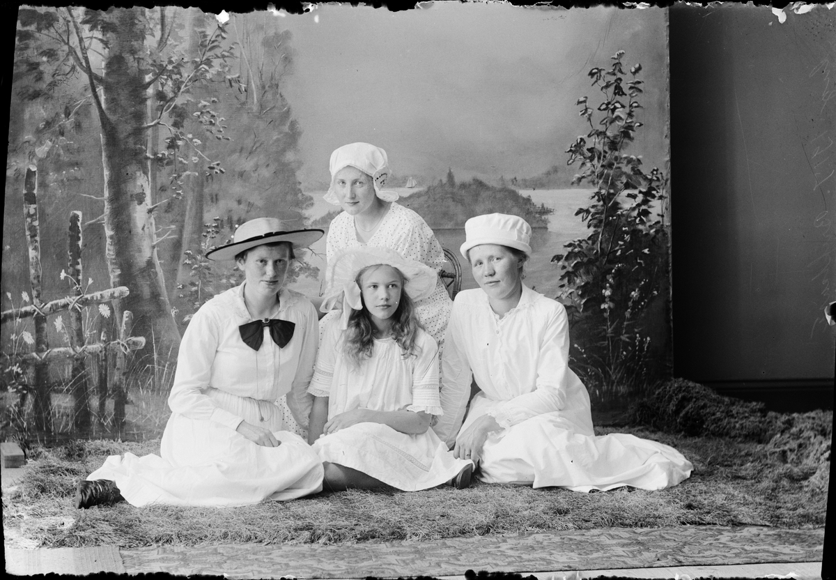 Ateljéporträtt - Sara och Tyra Edhlund, Ruth Skötsner tillsammans med en kvinna, Östhammar, Uppland