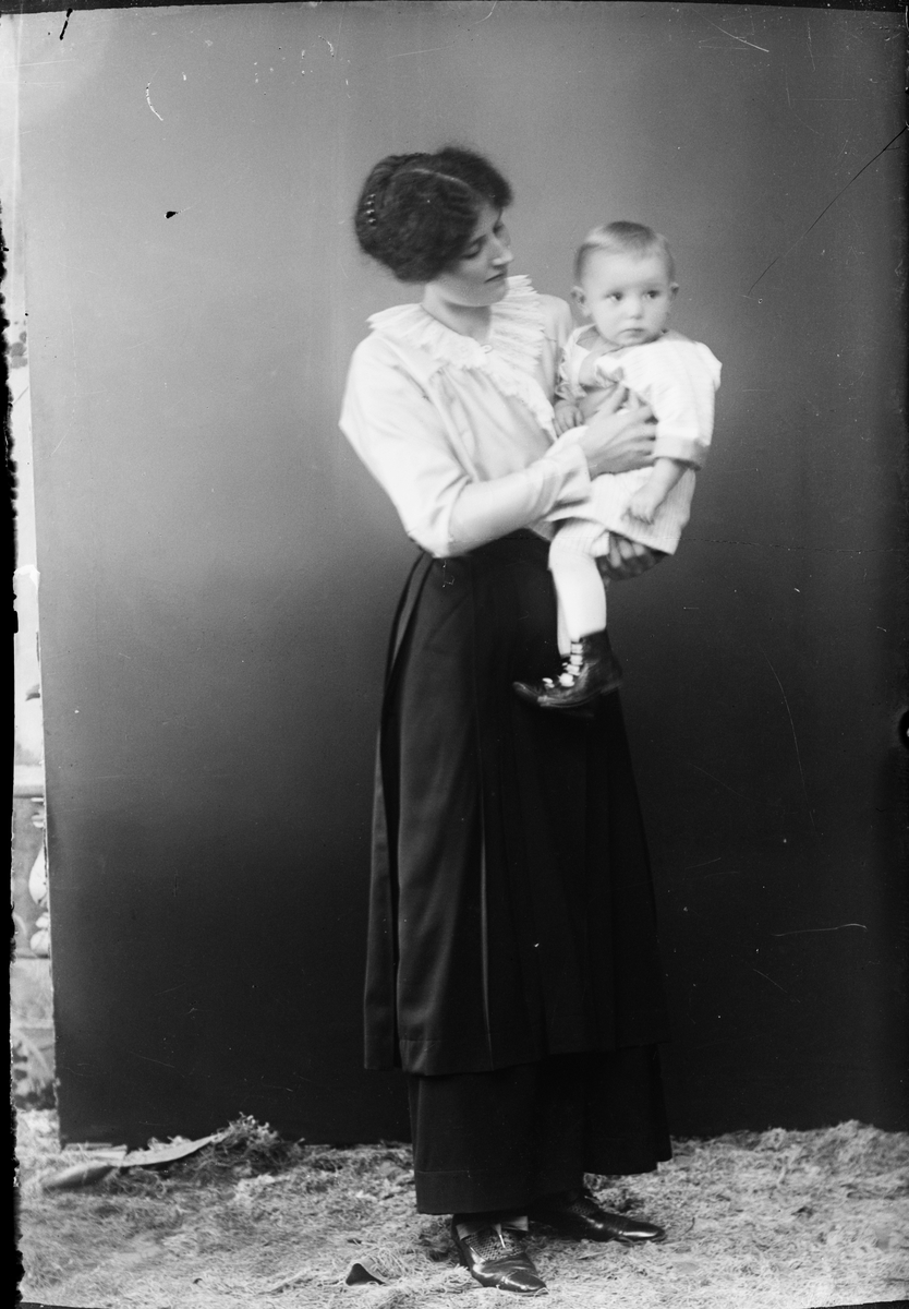 Ateljéporträtt - kvinna med ett barn i famnen, Östhammar, Uppland
