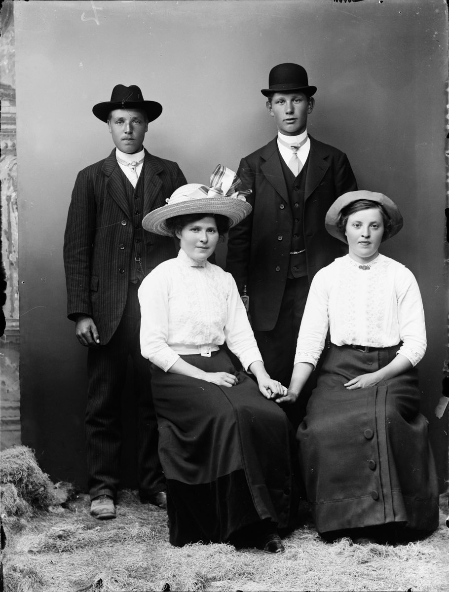 Ateljéporträtt - två män och två kvinnor klädda i hatt, Östhammar, Uppland