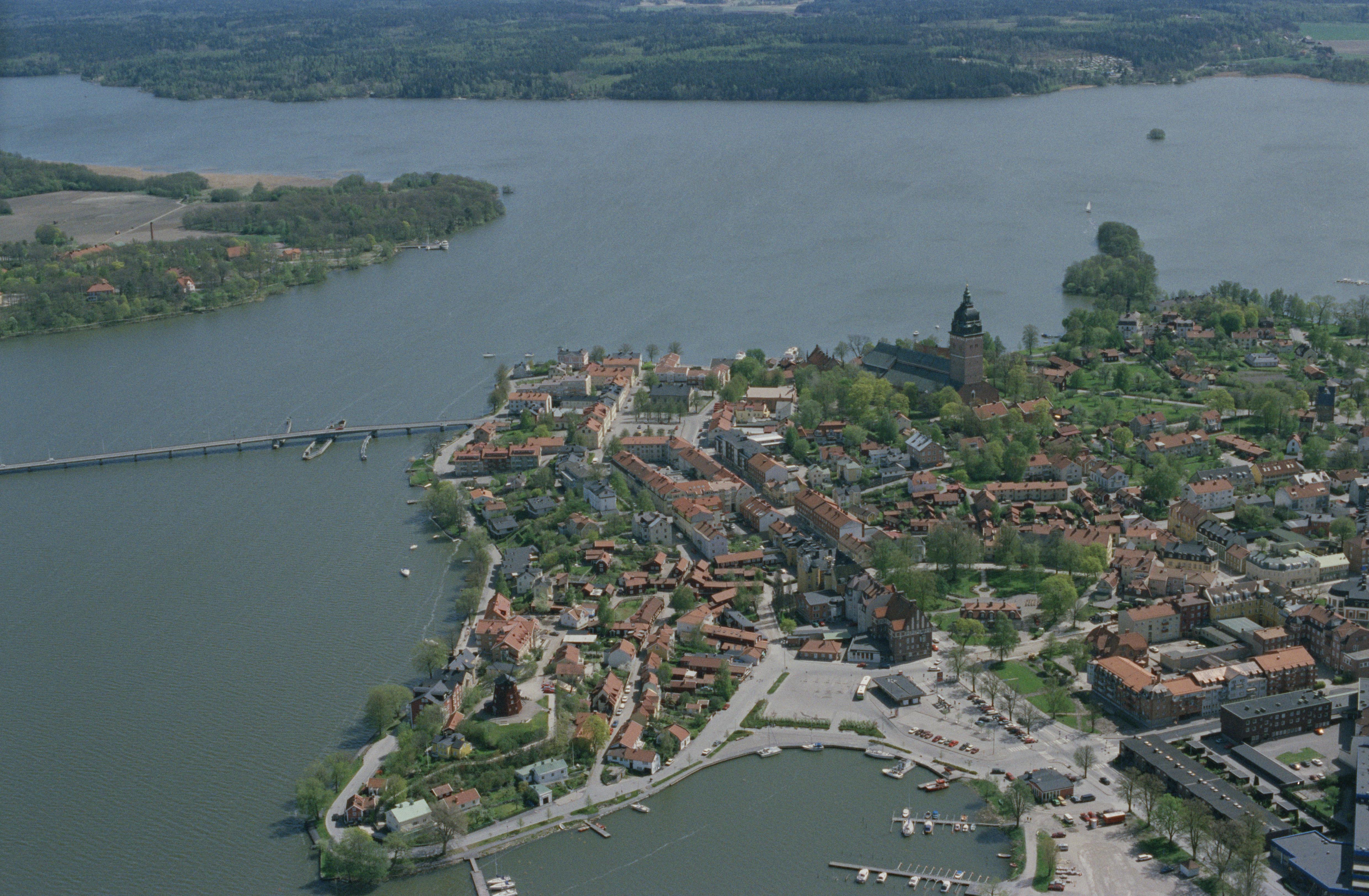 Strängnäs stad. Strängnäs domkyrka vid bildens mitt. Bilden är tagen mot (väderstreck): SO
