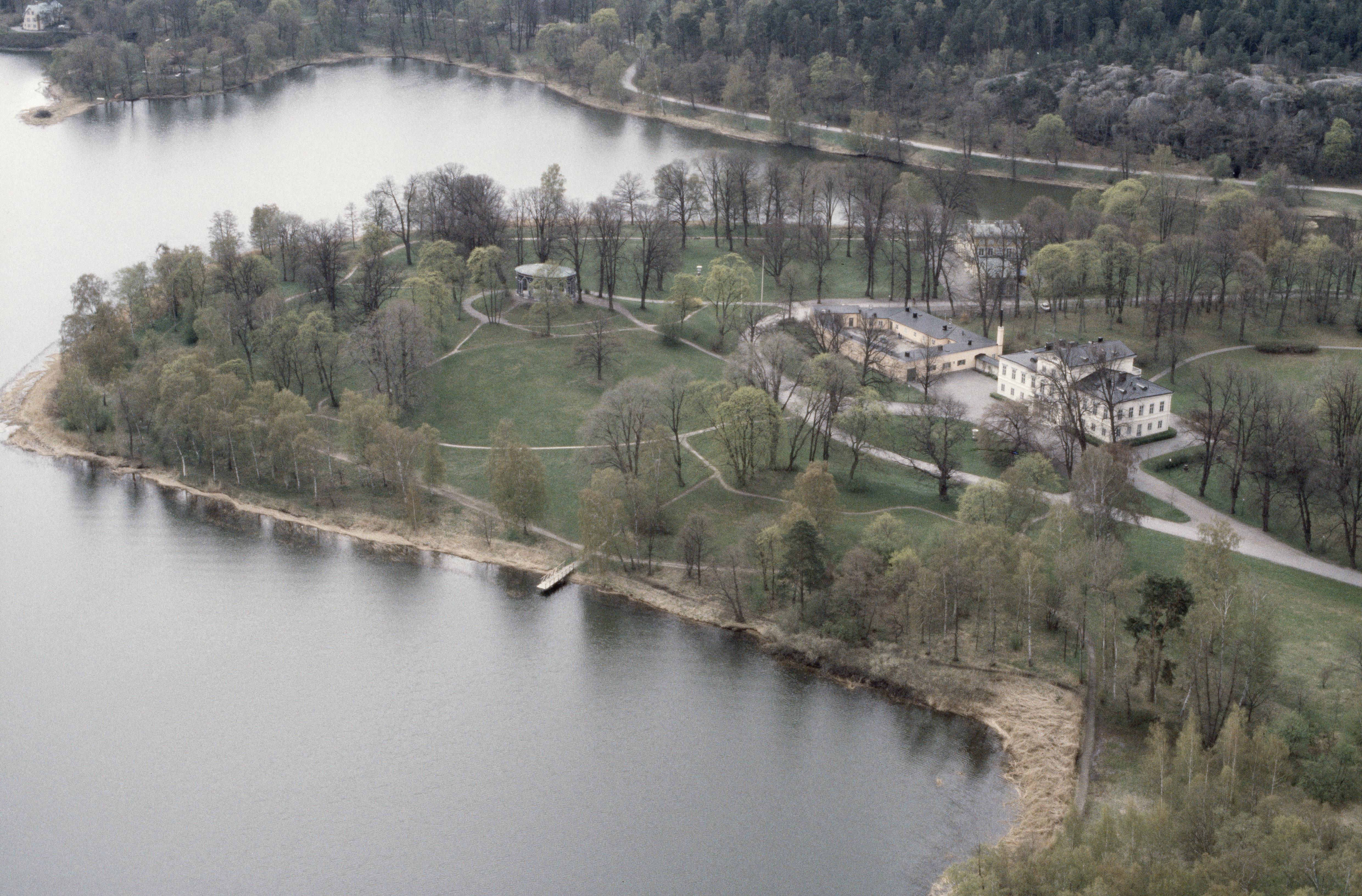 Hagaparken vid Brunnsviken. Haga slott, Gustav III:s paviljiong och Ekotemplet byggnadsminne RAÄnr Solna 30:1-3. Bilden är tagen mot (väderstreck): SV