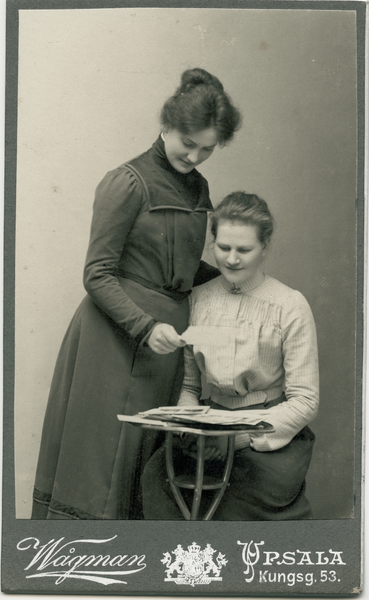 Kabinettsfotografi - två kvinnor, Uppsala tidigt 1900-tal