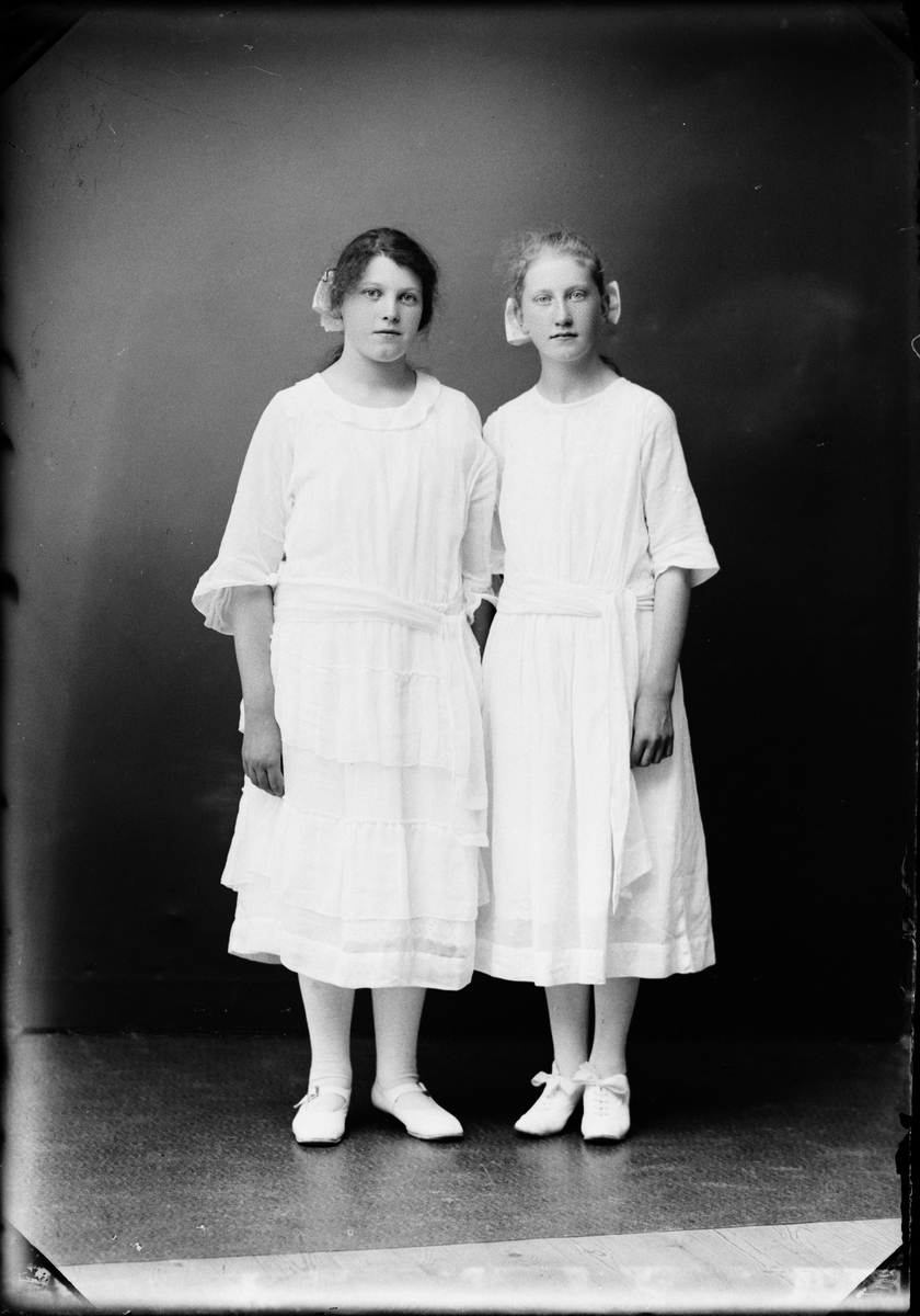 Ateljéporträtt - döttrar till Tegelmästare Henning Johansson från Gimo, Uppland 1924
