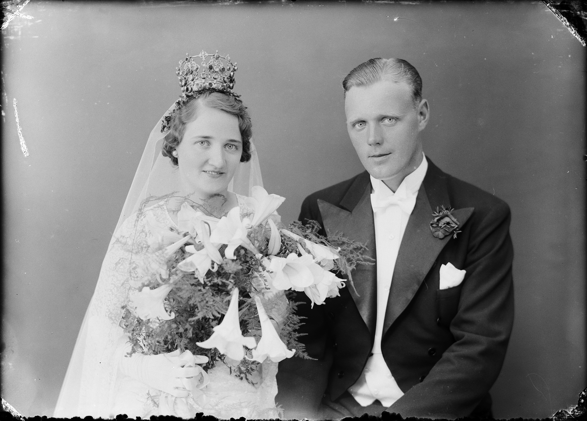 Ateljéporträtt - brudpar från Harg, Uppland 1935
