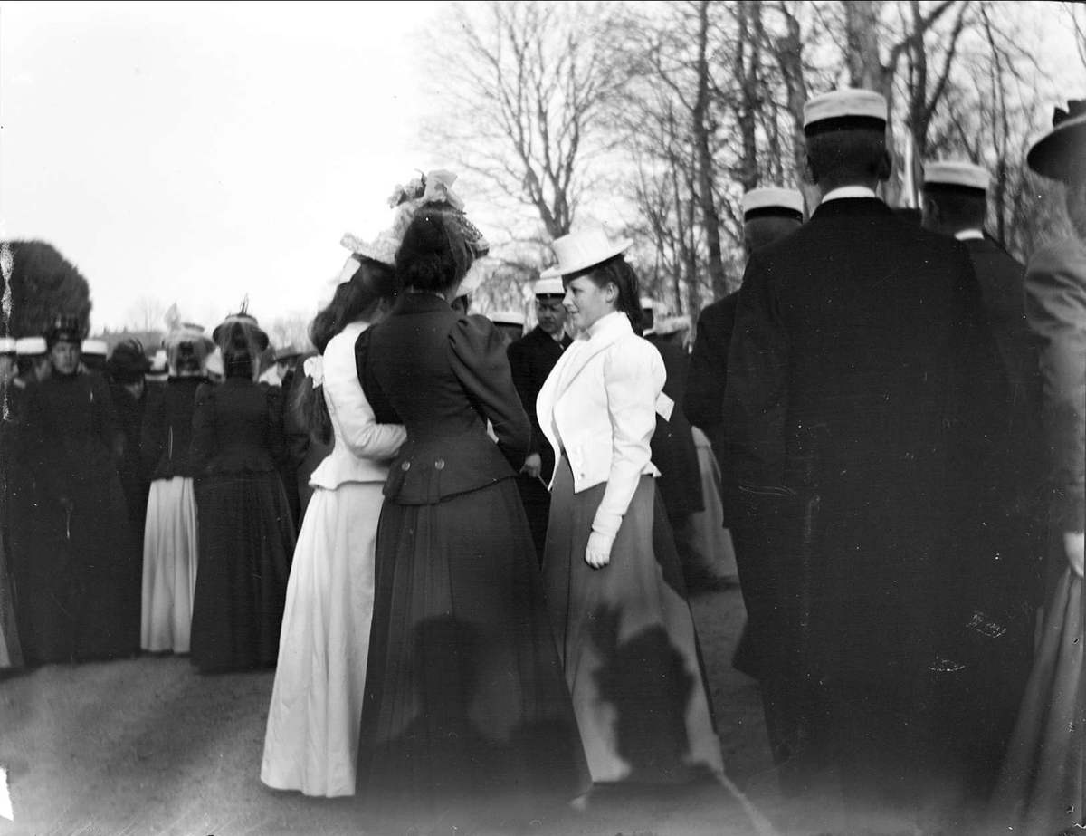 Folksamling, sannolikt vårfest i Botaniska trädgården, Uppsala