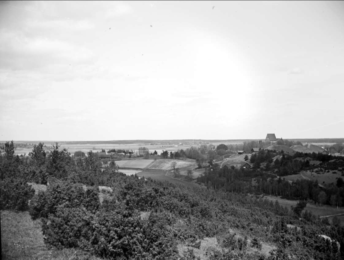 "Gamla Upsala från Tunåsen", norrut över fornlämningsområdet i Gamla Uppsala, maj 1915
