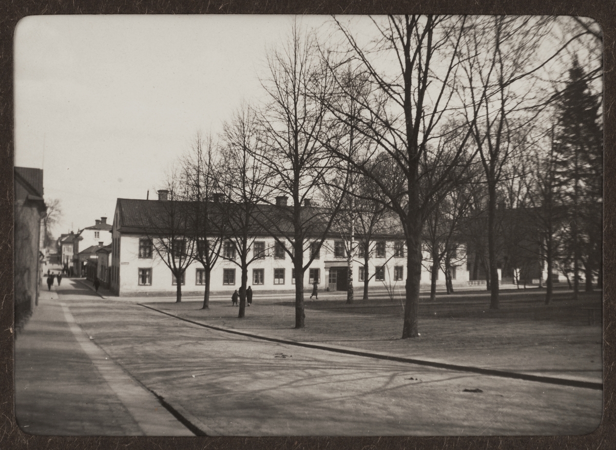 "Upsala. Järnbrogatan och St Larsgatan", nuvarande S:t Olofsgatan vid Universitetsparken, Uppsala 1925