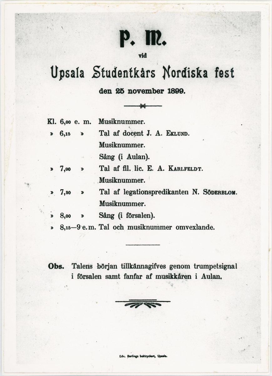 P. M. vid Upsala Studentkårs Nordiska fest 25 november 1899