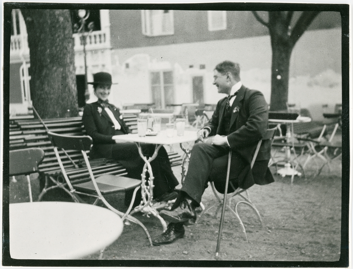 Lisa Lagerholm och Bengt Mannerfeldt på uteservering, Uppsala