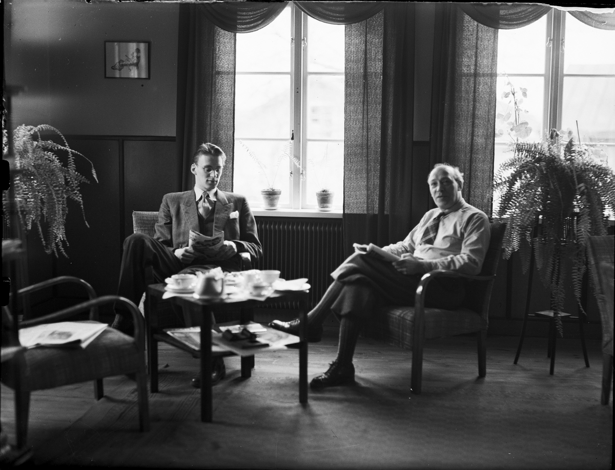 Två män sitter i varsin fåtölj och läser, Östhammar, Uppland