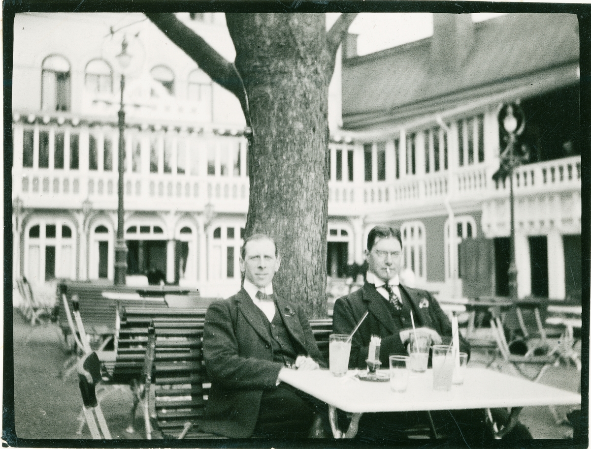 Ivar Gosselman och Bengt Mannerfeldt på uteservering, Uppsala