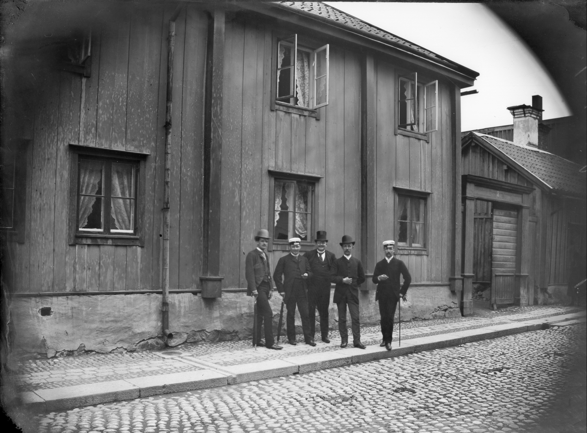 "Några herrar utanför huset", Bredgränd 2, Uppsala 1889