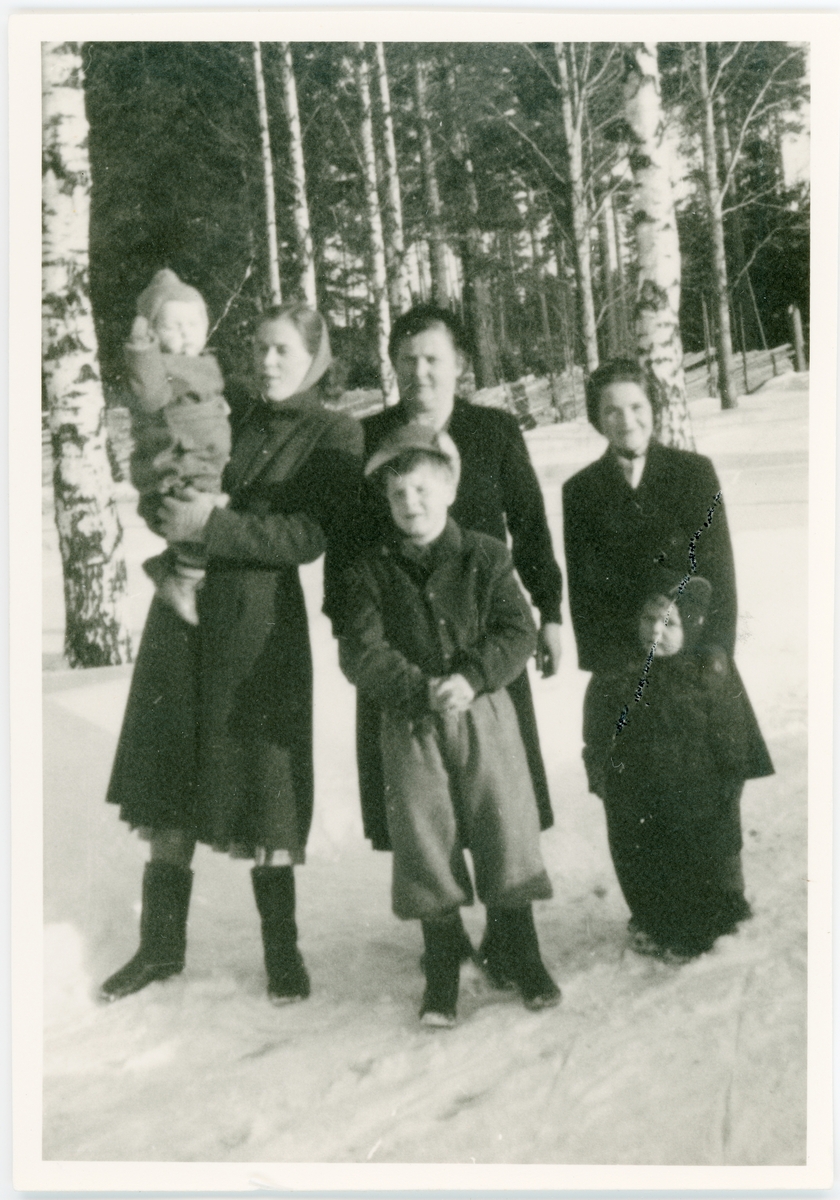 Kvinnor och barn på vinterväg, Uppland