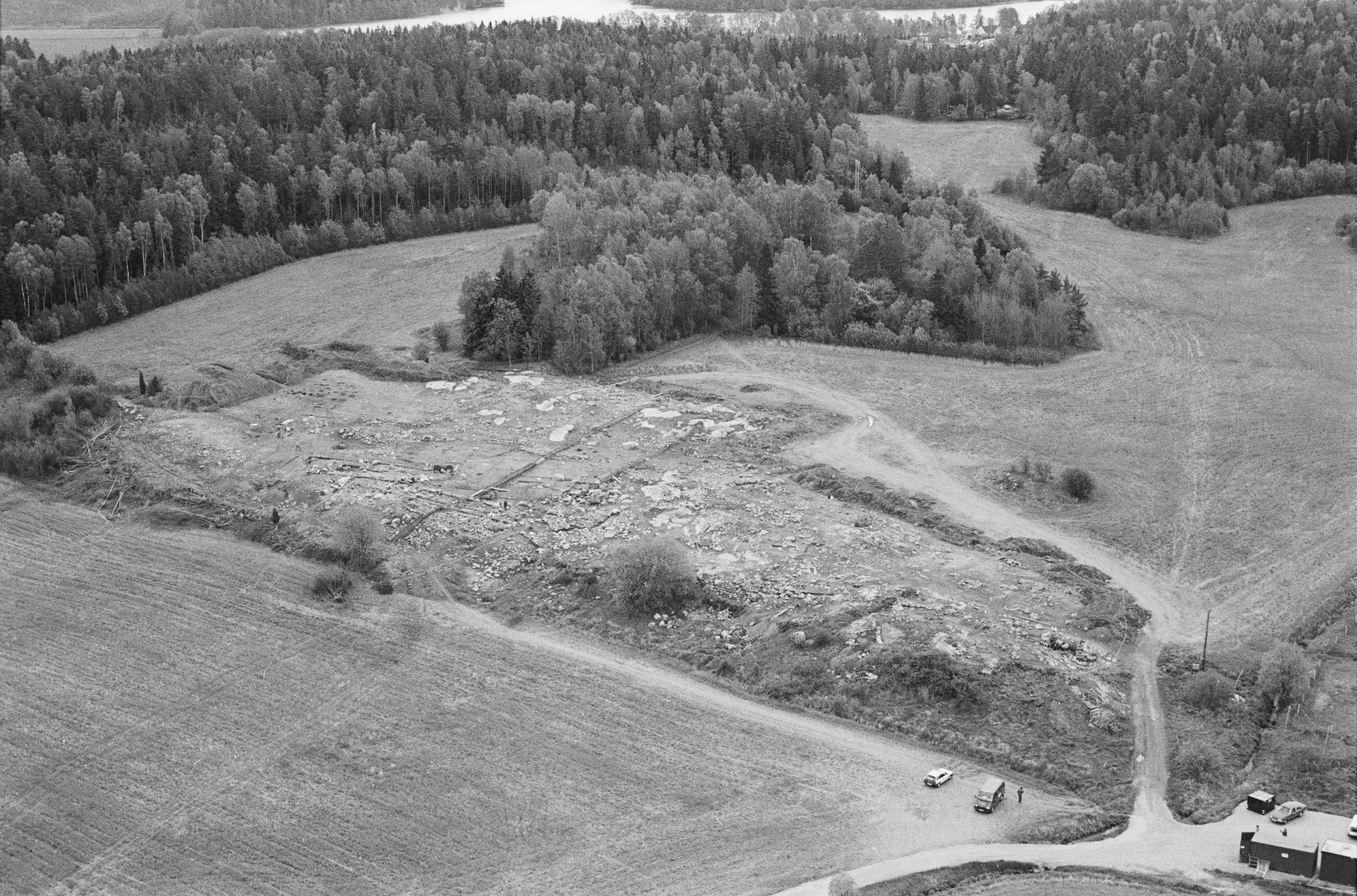 Arkeologisk undersökning innan bygging av bostäder. Gravfält och boplatsområde RAÄnr Fresta 147:1. Bilden är tagen mot (väderstreck): SO