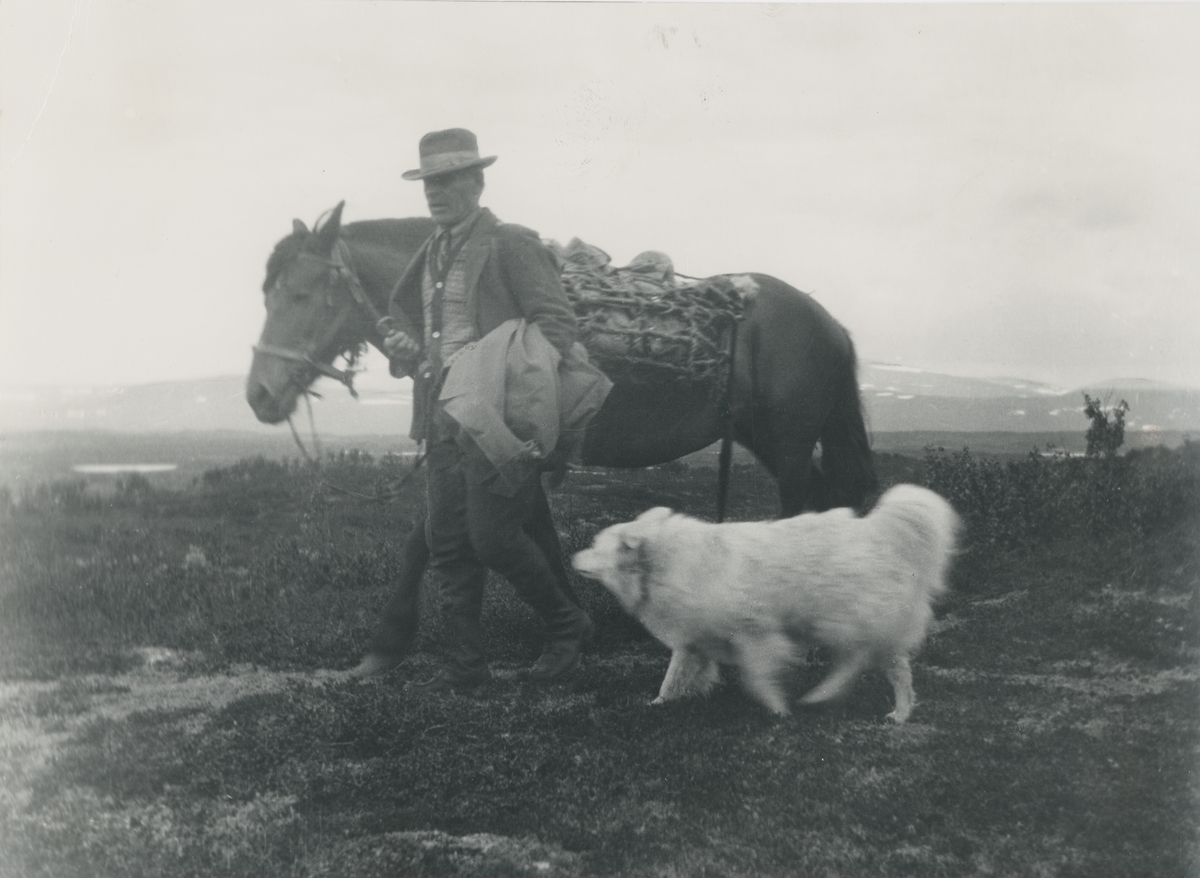 Jens Pålsson med häst och hund, Forsåsen, Jämtland