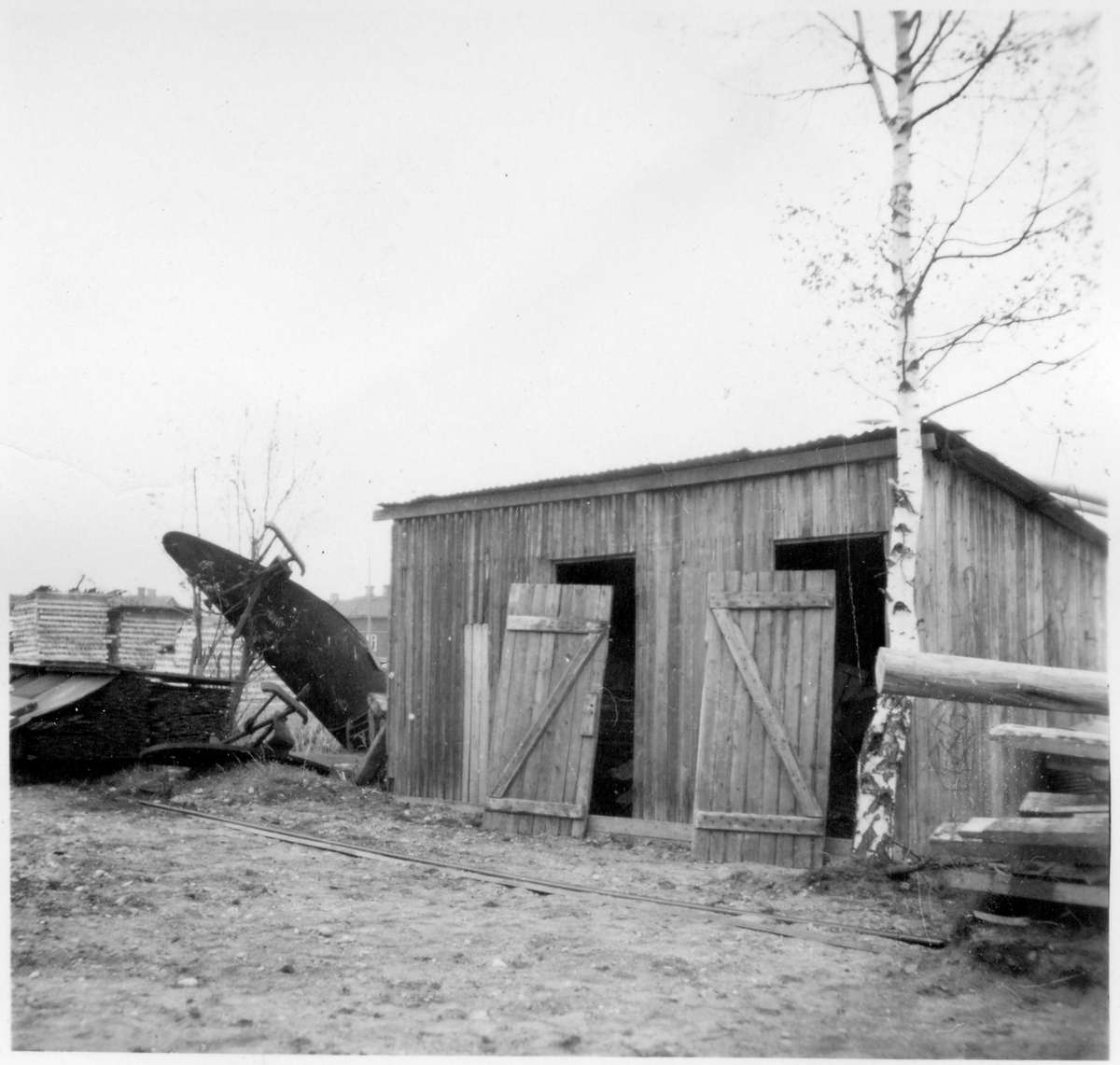 Vägstation Vmo X4, Bollnäs. Enkelt träskjul Vid byggnadens gavel sidoplog.