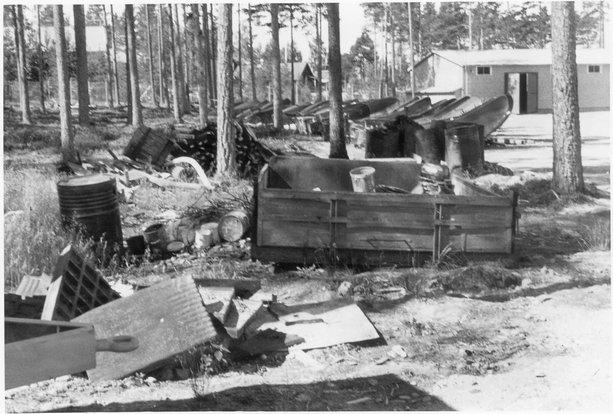 Vägstation Vmo X8, Ljusdal. Skrotlåda. I bakgrunden uppställda spets- och sidoplogar