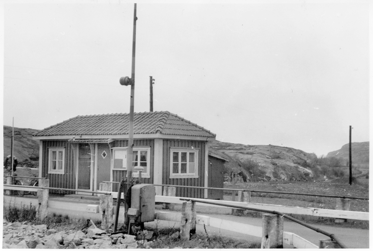 VFO, Sote kanal. Brovaktarstugan vid svängbron över Sote kanal, väster Sundebackarna å väg 885. Vägbom framför svängbron.
