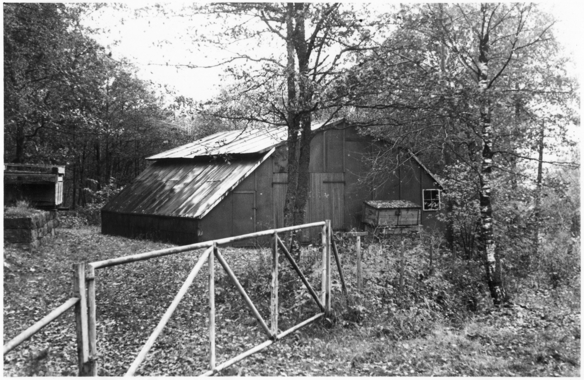 Vägstation N2, Skedala. Förrådsbyggnad, innanför grind. Redskapslådor.