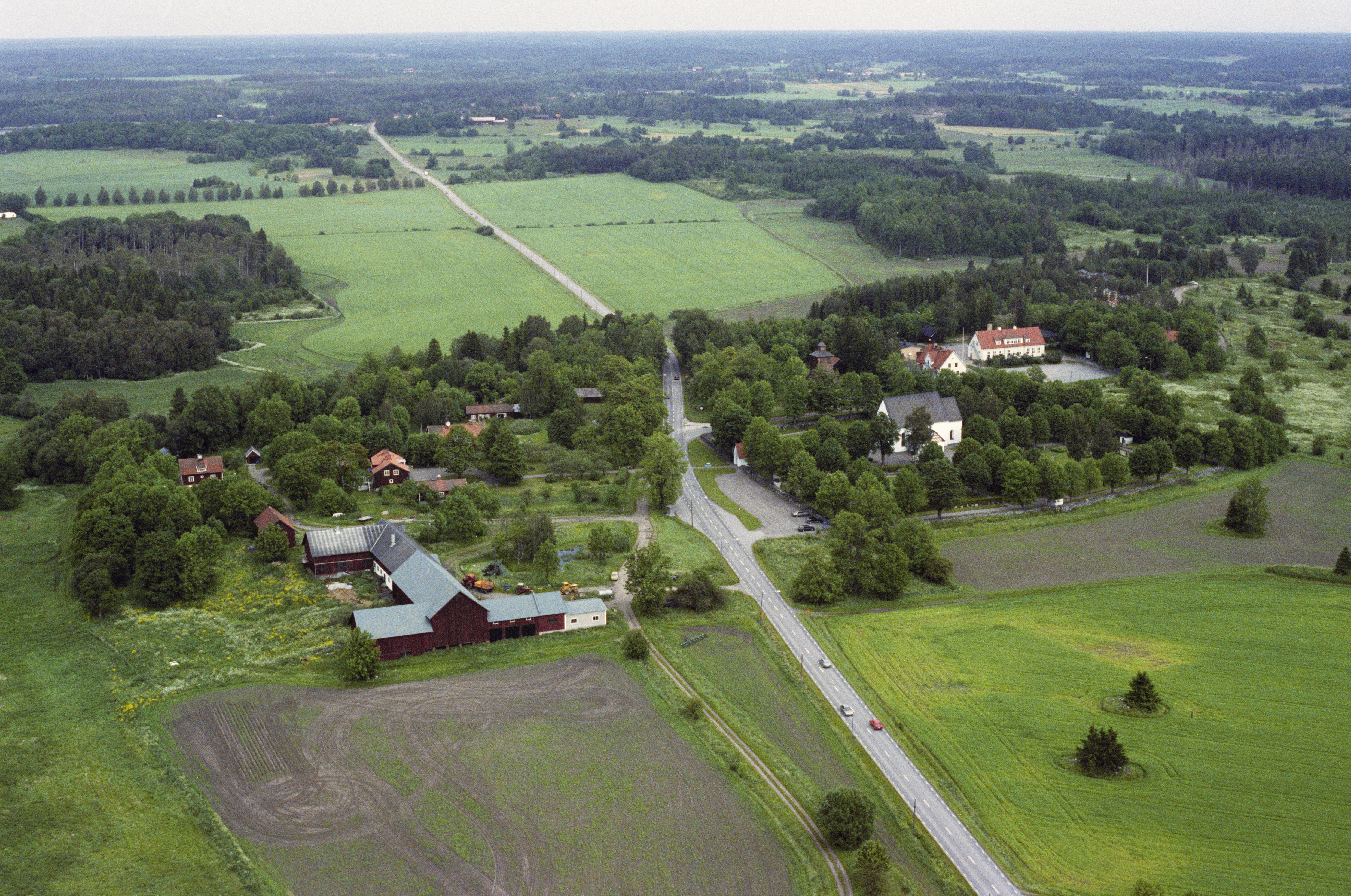 Estuna kyrka och kyrkby. Bilden är tagen mot (väderstreck): N