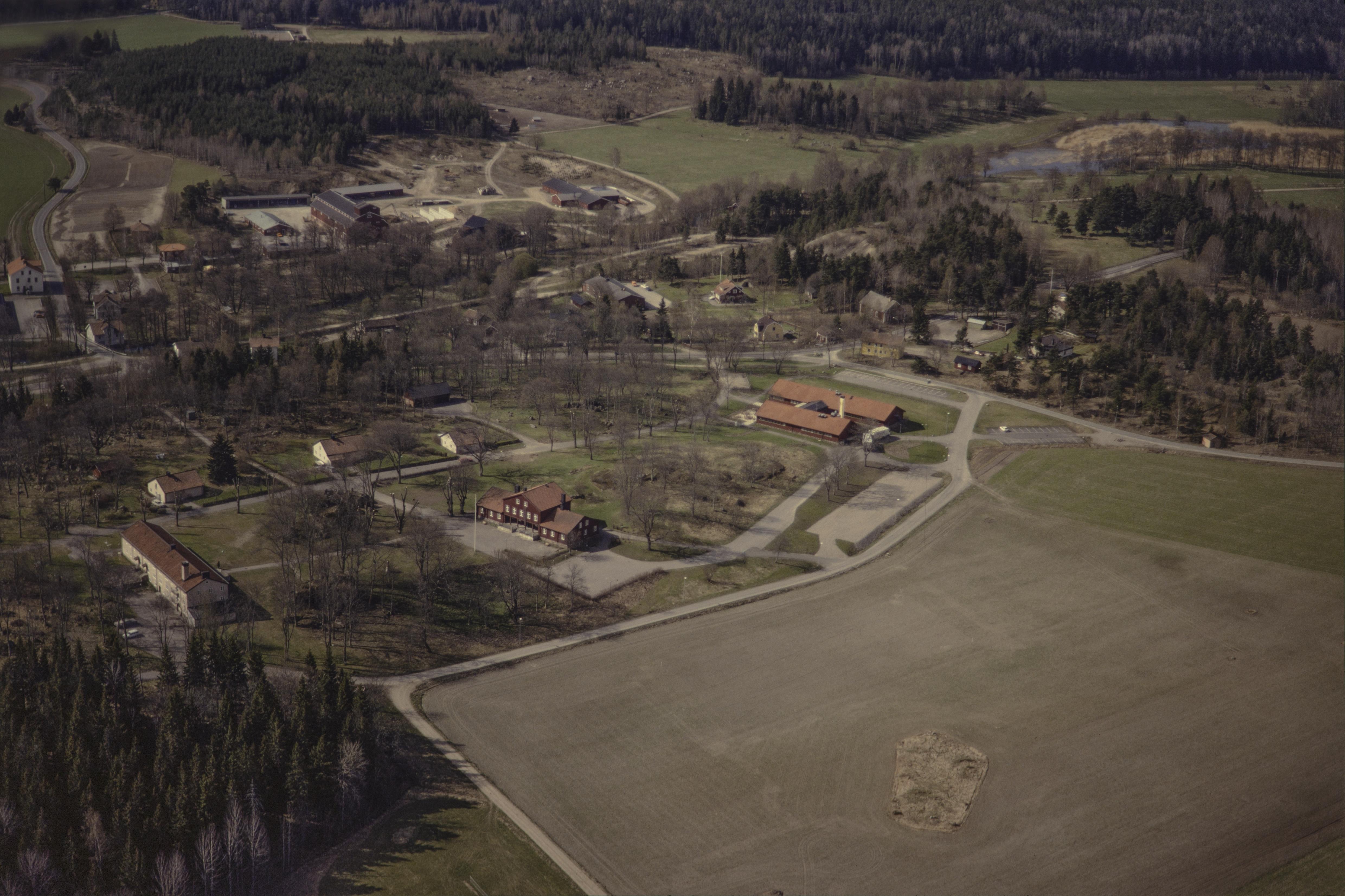 Finsta herrgård i Finsta by. Fornminnen efter Heliga Birgitta bl.a. "Birgittas grotta" RAÄnr Skederid 6:1 vid bildens mitt. Bilden är tagen mot (väderstreck): SV