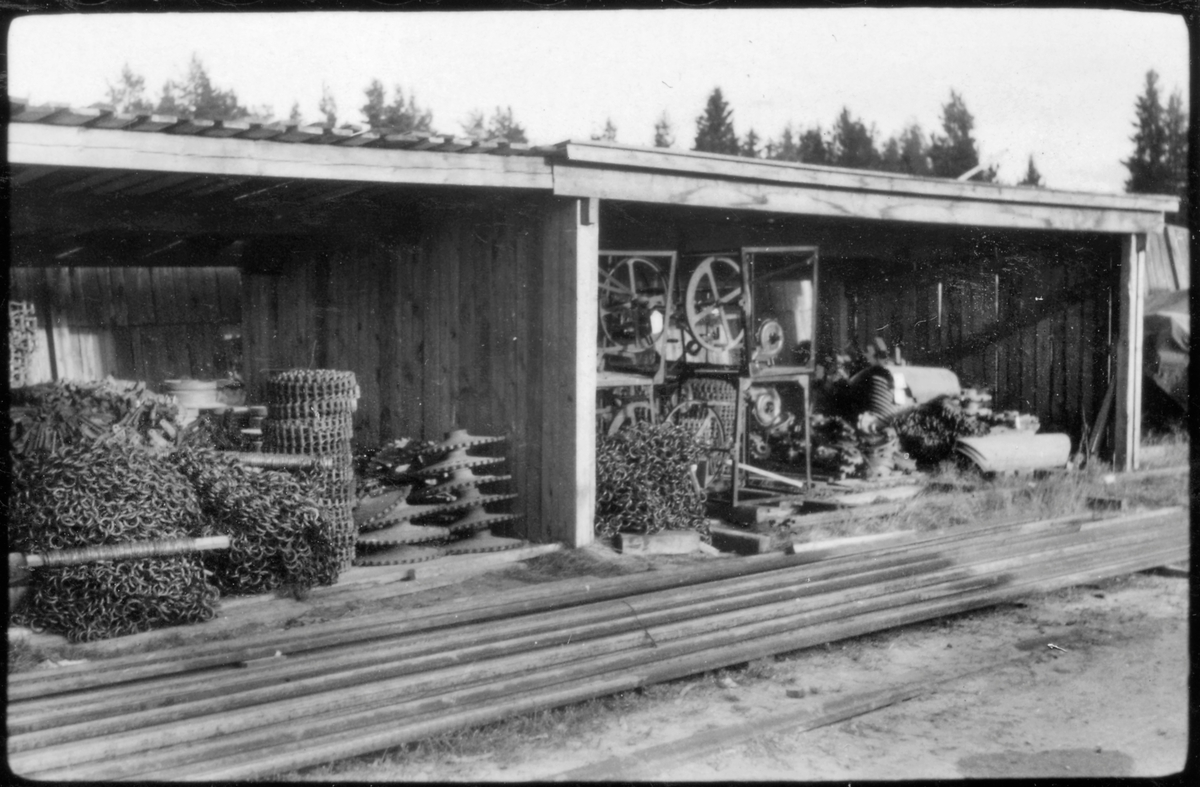 Depåförråd VFAC (Vmo AC5, Vindeln). Förrådsbyggnad, öppet skjul, med diverse materiel, bland annat kättingar, kuggdrivhjul, fältässjor.