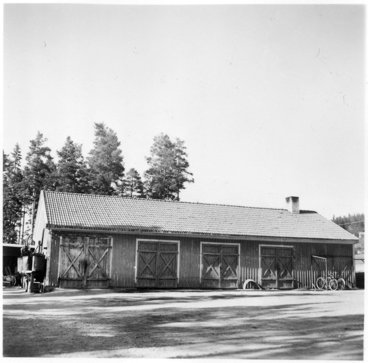 Vägstation Y4, Liden. Förråds- eller garagebyggnad. Till höger cykelställ med cyklar.
