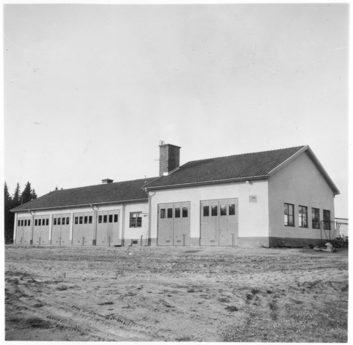 Vägstation Y8, Bjästa. Vägstationens huvudbyggnad med från vänster garage, kontor, verkstad. Markberedning pågår på garageplan.