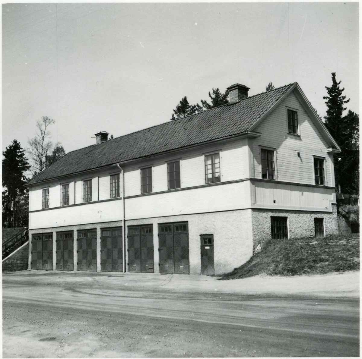 Vägstation Vmo X6, Forsa. Tvåvåningsbyggnad med garage i bottenvåningen. Invid väg.