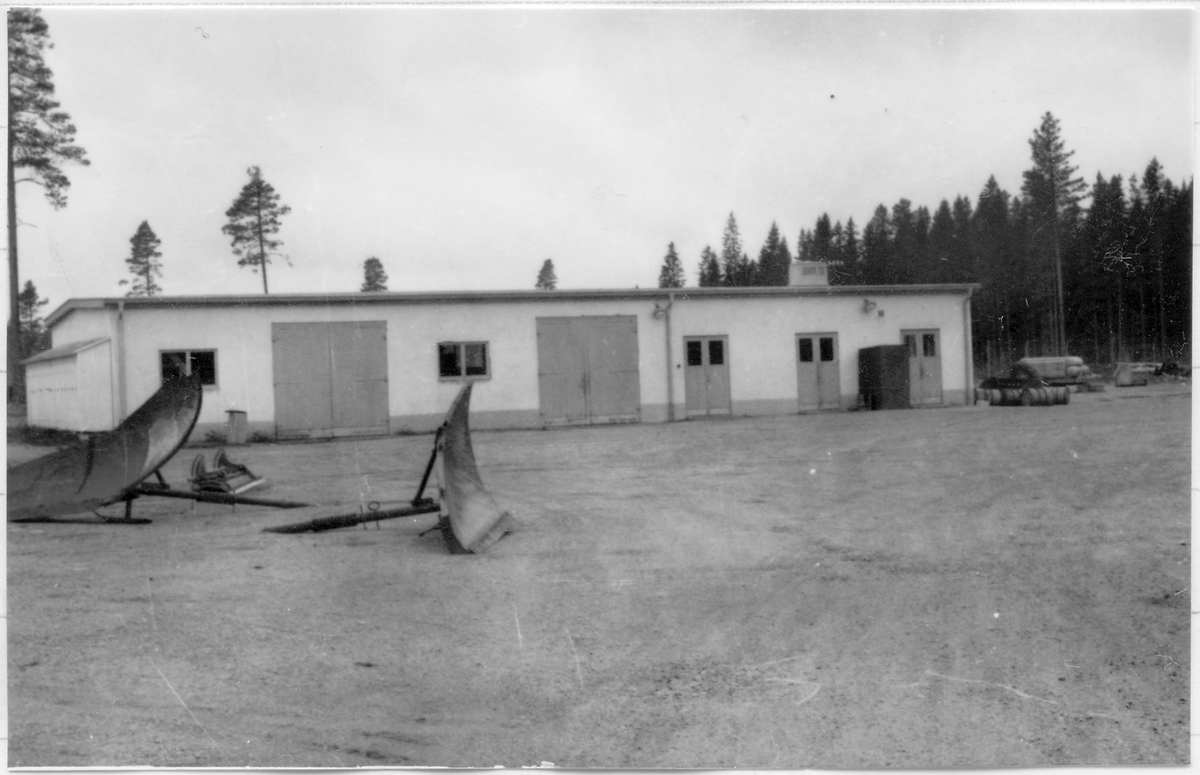 Vägstation Vmo X7, Gnarp. Garage- och förrådsbyggnad. På garageplan sidoplogar (för vänstertrafik).