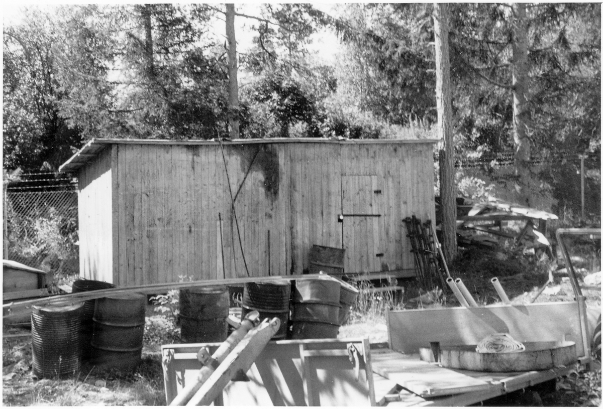 Titel: Byggnadsavdelningens förråd, i anslutning till Vmo X8, Ljusdal. Mindre träskjul, skrotupplag