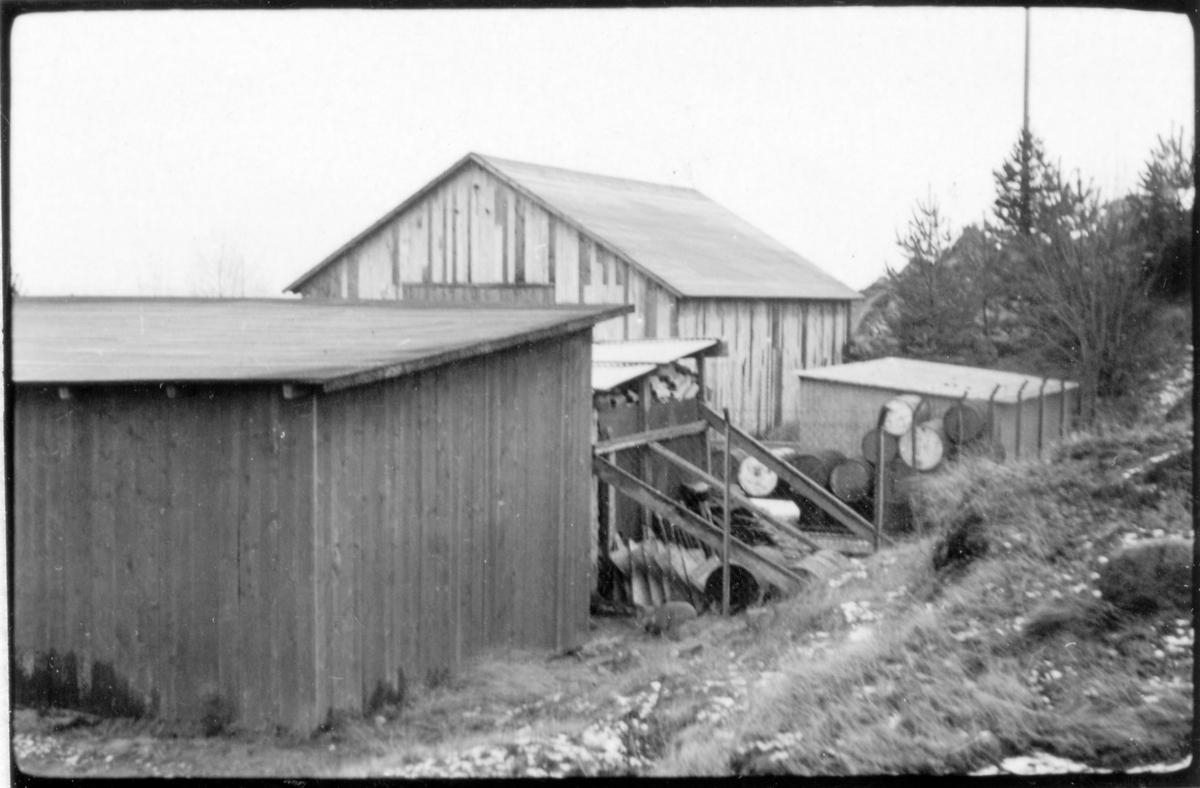 Vägstation F8 och F9, Värnamo. Förrådsbyggnader, upplag av bland annat bränslefat.
