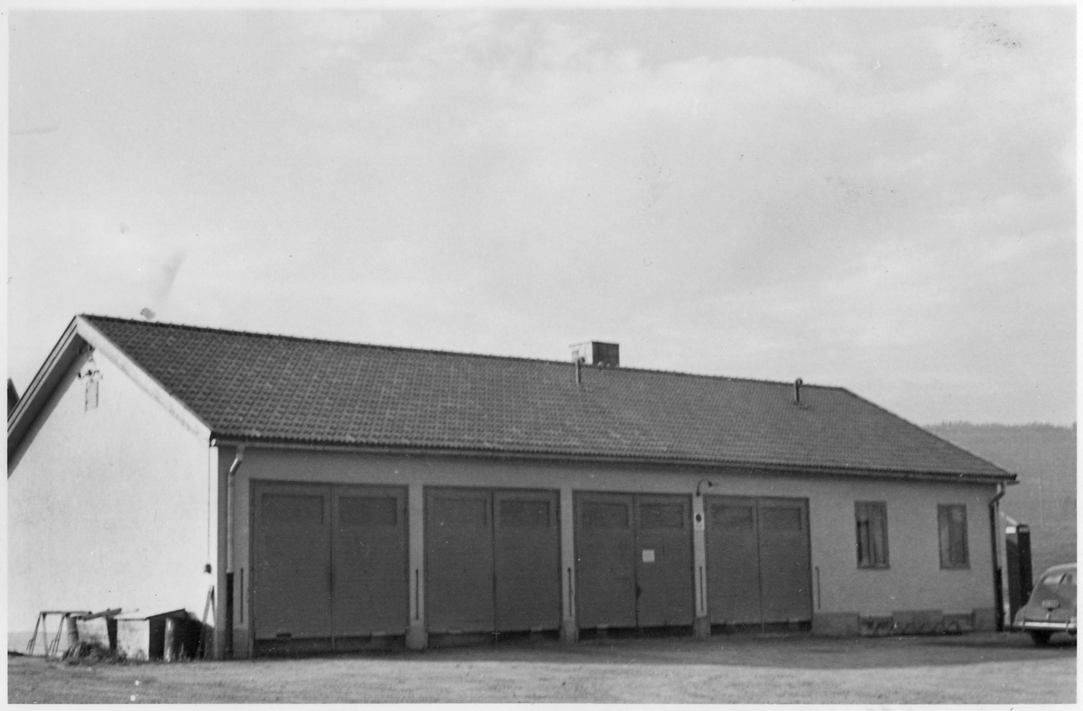 Vägstation Z1, Kälarne, filial Hammarstrand. Vägstationens huvudbyggnad, med kontor och garage. Vid bortre gavel bensinpump (drivmedelspump). Vid främre gaveln redskapslådor.