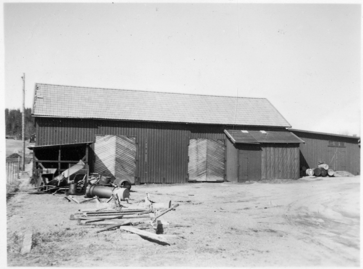 Vägstation Z2, Gällö. Förrådsbyggnad. Upplag av diverse material, "skrot", framför byggnaden.