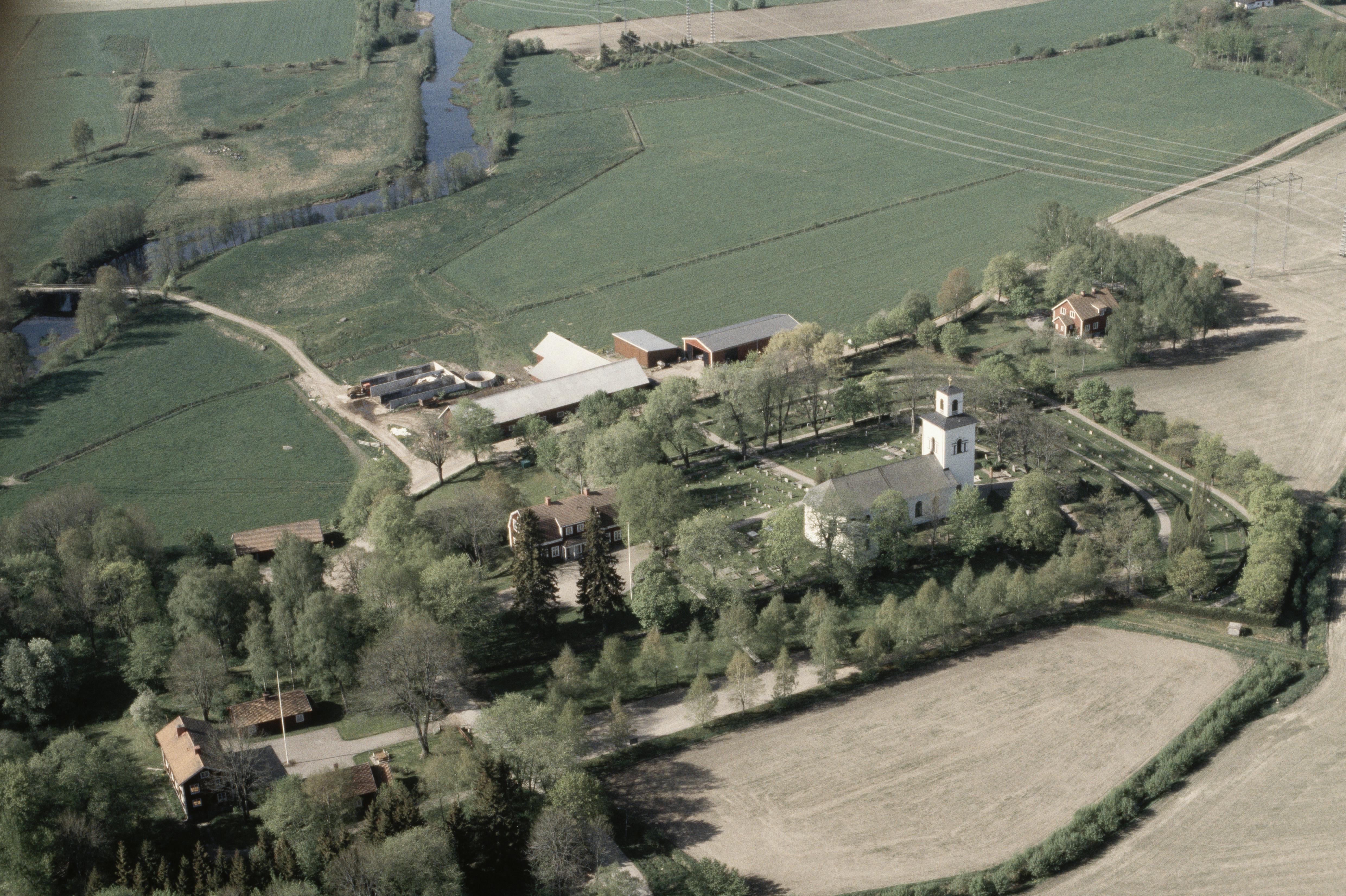 Vintrosa kyrka och kyrkby vid Svartån. Bilden är tagen mot (väderstreck): SSV